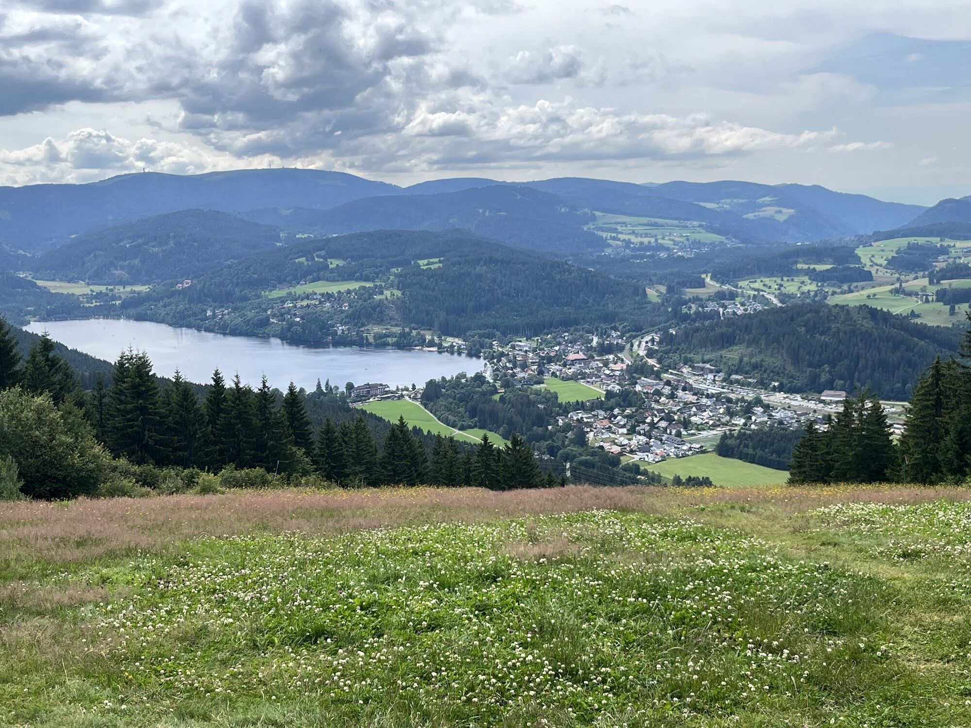 Über Balzhausen, einen Teilort Grafenhausens kommst du nach Lenzkirch. Du durchquerst das kleine Städtchen und machst dich an deinen letzten Aufstieg zum Hochfirst, wo du die Aussicht auf den Titisee genießen kannst. An der Hochfirstschanze vorbei fährst du zurück zu deinem Ausgangspunkt, dem Bahnhof Neustadt.