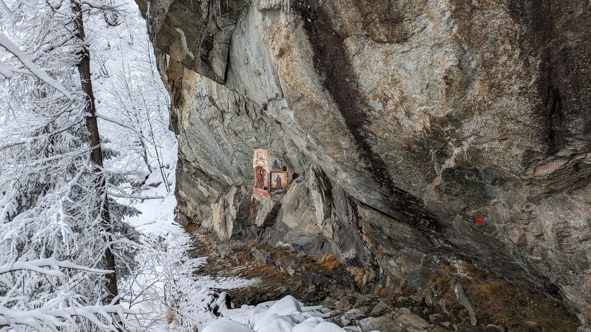 Attenzione al passaggio in prossimità del pilone contro roccia: in caso di poca neve è probabile incontrare del ghiaccio: tenersi al cavo di acciaio contro la roccia e, nel caso, utilizzare ramponi adeguati.