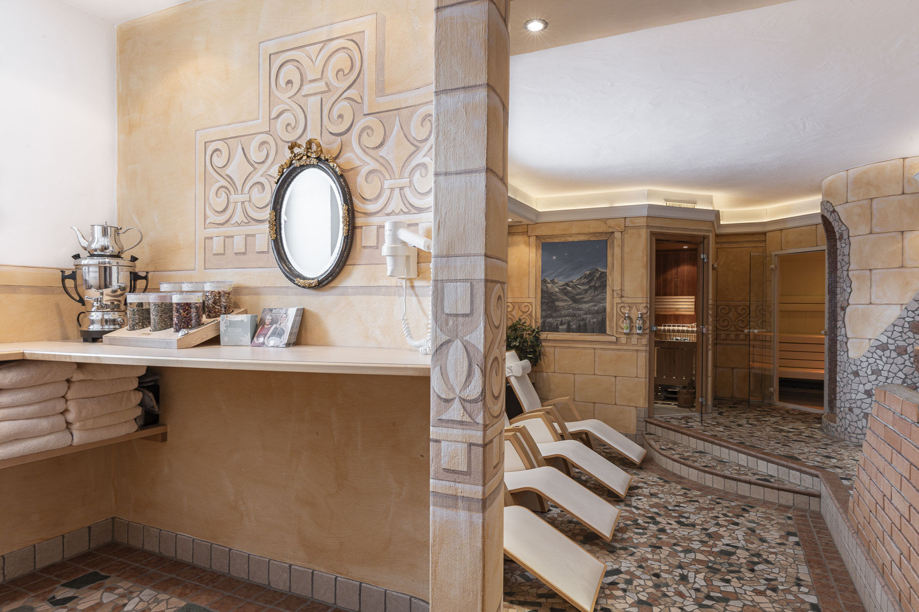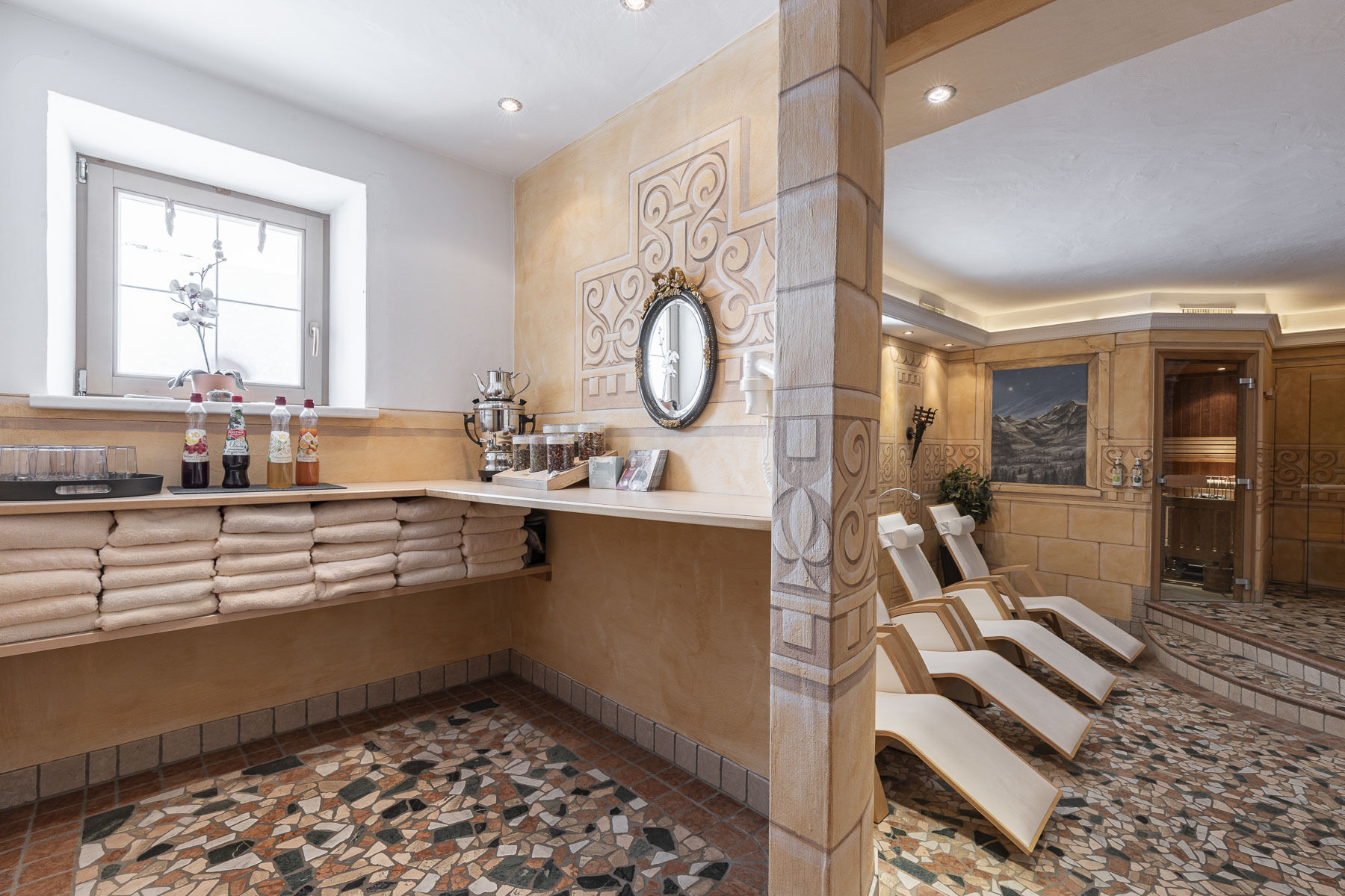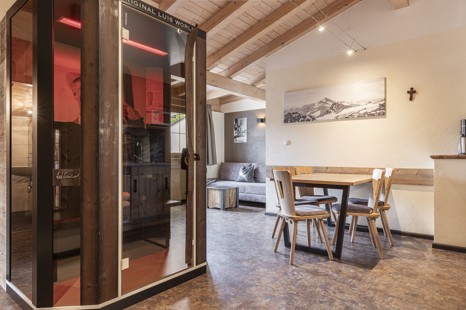 - Laudegg-Wellness im Laudegghof Ladis mit Sauna, Dampfbad, Infrarotkabine, Wärmebank und Ruheraum für all unsere Alpenresort-Gäste